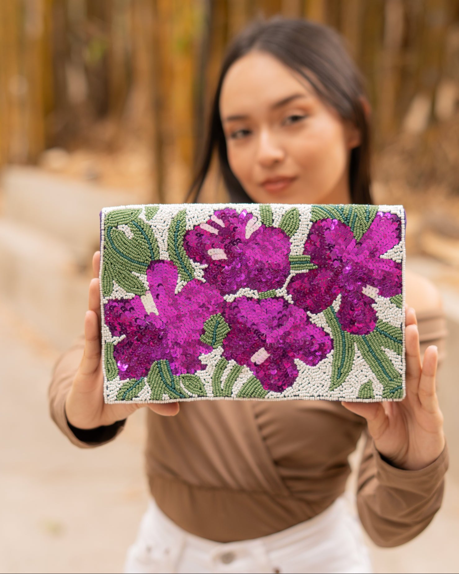 Accent any special occasion with this beaded clutch purse. Crafted with intricate beading, its pattern and color combination make for a stylish, eye-catching accessory. Its compact design makes it perfect for day or night – making it a great gift for any occasion.