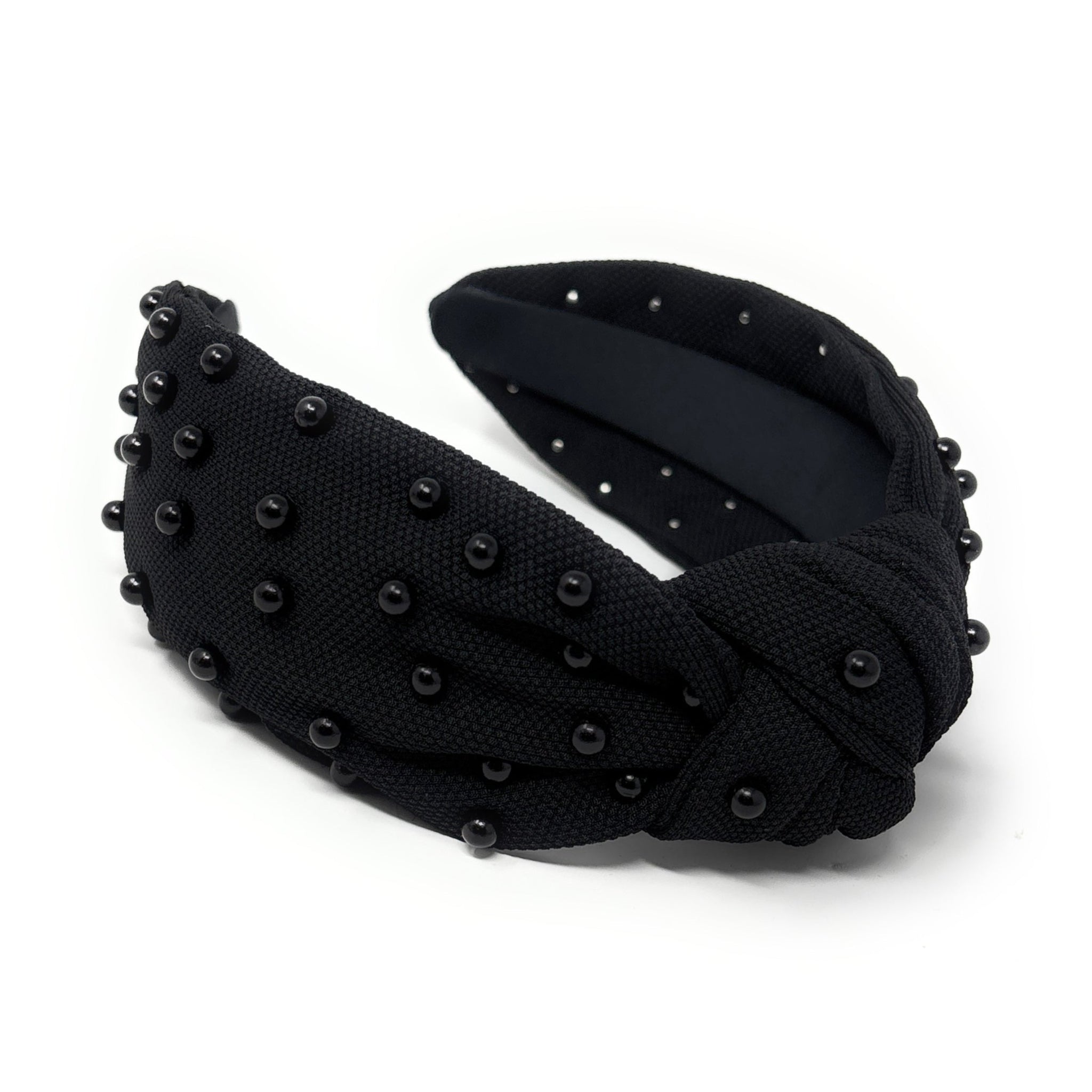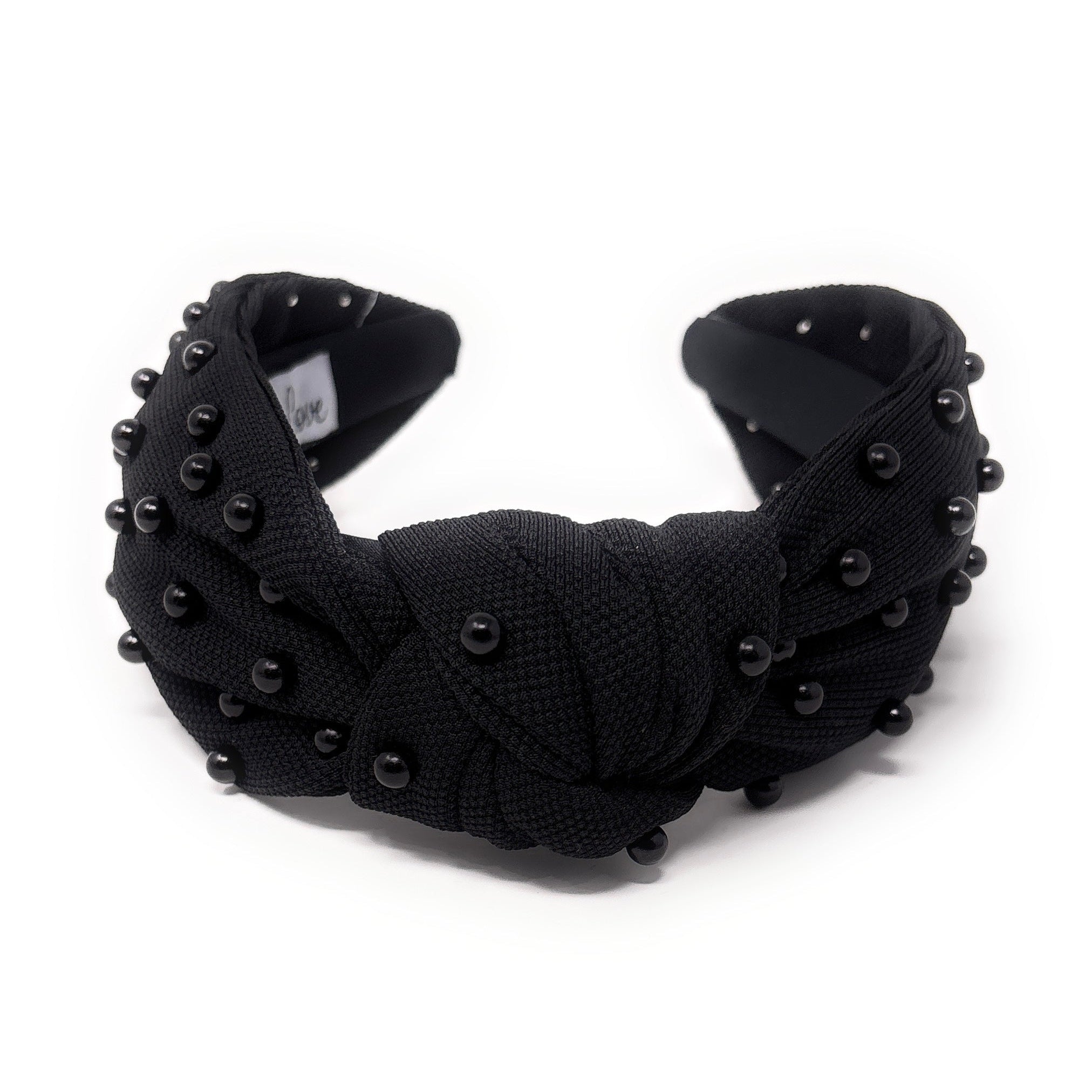 Elevate your look with this handcrafted Black Pearly Knot Headband, adorned with elegant black pearls that add a timeless touch of sophistication. Its beautiful design seamlessly blends classic charm with modern flair, making it the perfect accessory to enhance any outfit with understated elegance.