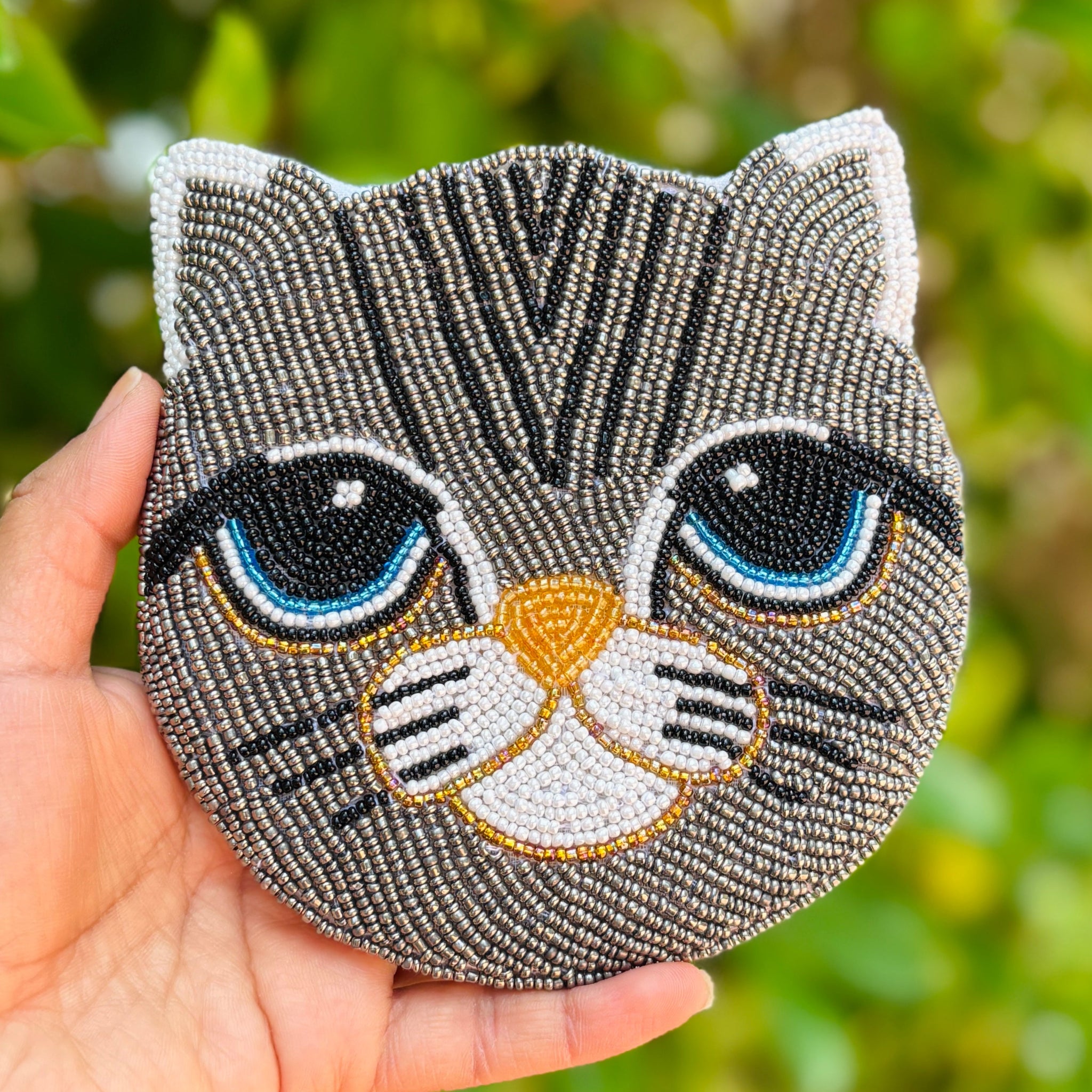 This Cat Beaded Pouch is a stunning handcrafted accessory that combines beauty with compact convenience. Each pouch is uniquely hand beaded, making it a one-of-a-kind piece that adds a touch of elegance to any outfit. Its small size makes it perfect for carrying essentials while standing out with its intricate design. Elevate your style with this exquisite, artisanal pouch that blends artistry and practicality effortlessly.