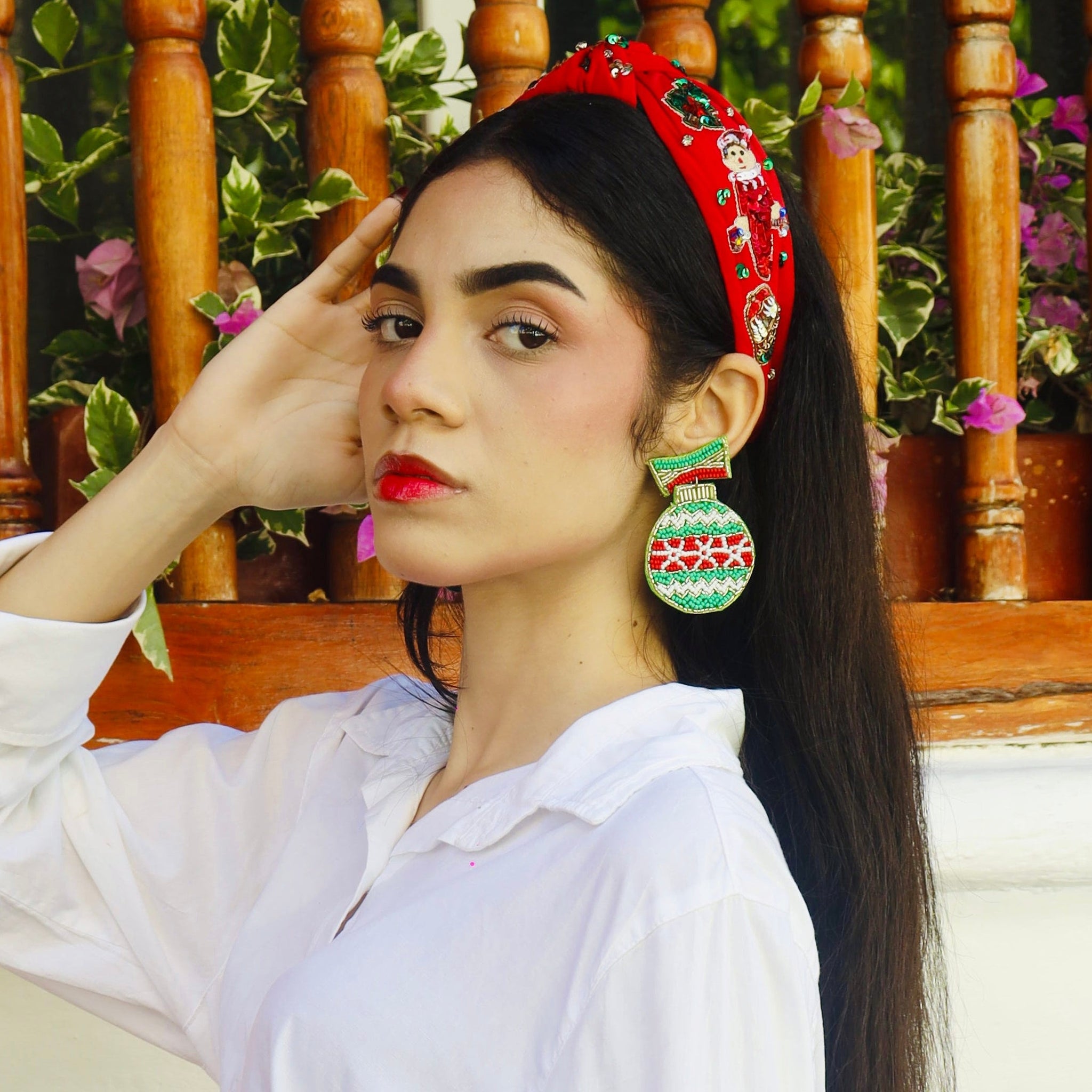 Add a touch of holiday cheer to your outfit with our Green Ornament Beaded Earrings. Handcrafted with beautiful green, white, and red seed beads, these earrings are a must-have for any festive occasion. Get ready to shine and spread joy this holiday season!
