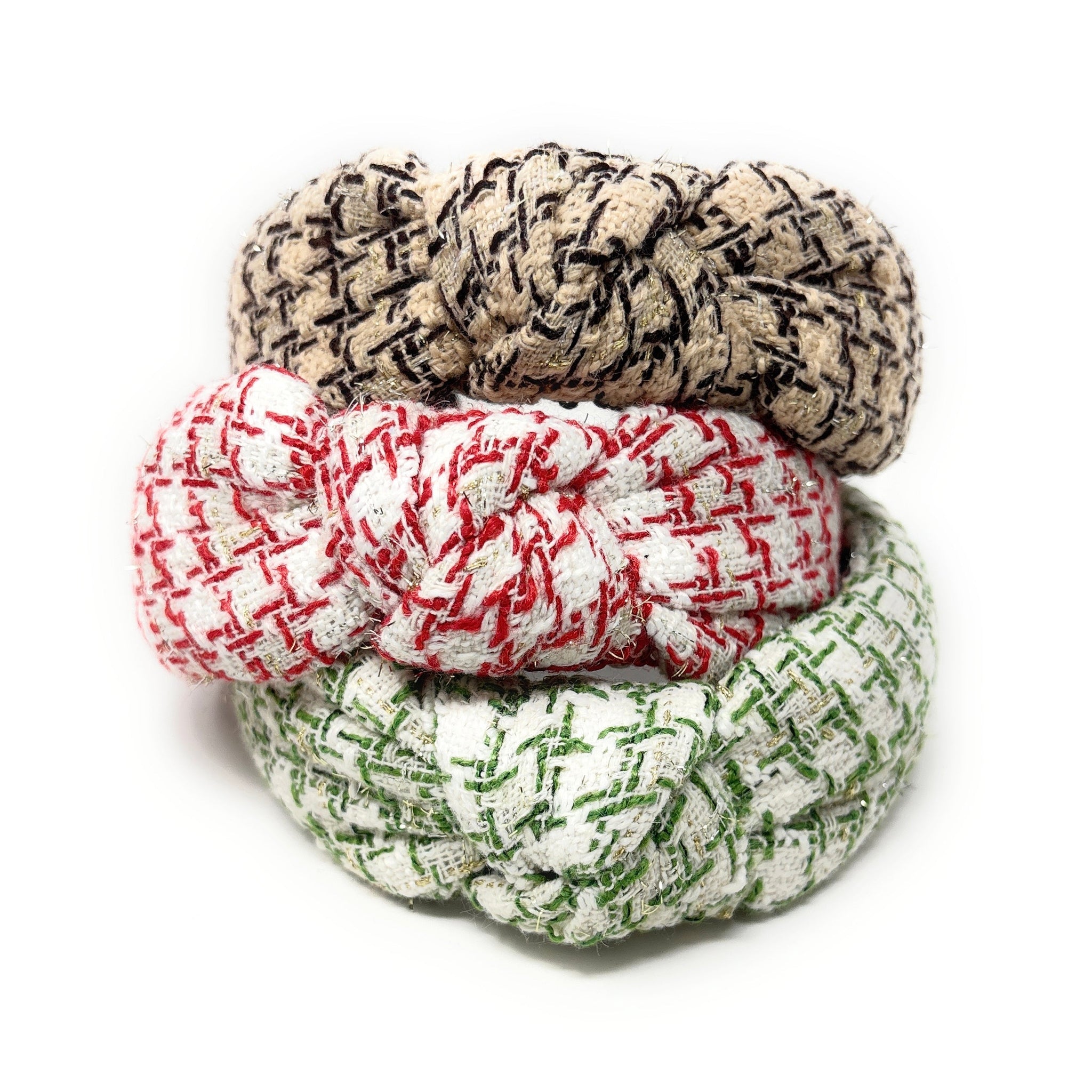 This beautiful handcrafted tweed knot headband is the perfect accessory for the holiday season and beyond. Each piece is expertly made with quality tweed that brings warmth and texture to any outfit. The charming knot detail adds a touch of elegance while keeping your hair secure and styled throughout the day. Whether you're attending festive gatherings or enjoying everyday moments, this versatile headband complements any look with effortless sophistication. Give yourself or a loved one a handmade treasure that celebrates genuine craftsmanship and timeless style.