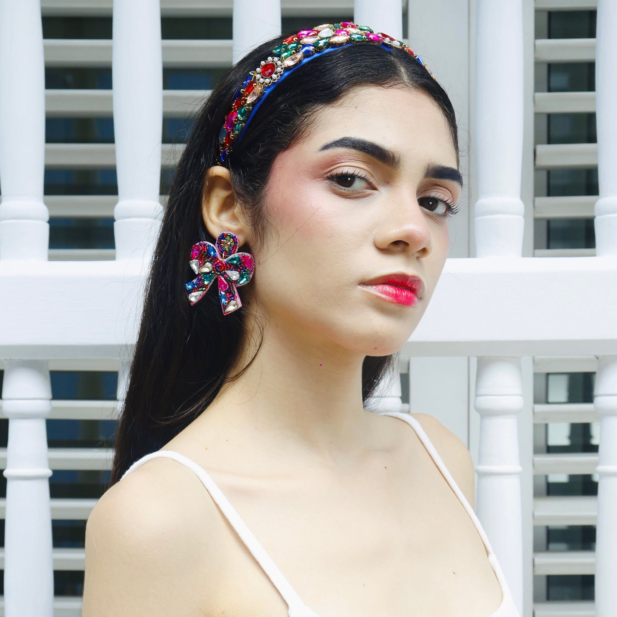 Transform any outfit into a work of art with the Mabel Embellished Baroque Headband. Intricately designed with beautiful multicolor jewels and small pearls, this stunning headband adds a touch of uniqueness and elegance to any look. Embrace the luxurious baroque style and stand out in any crowd.