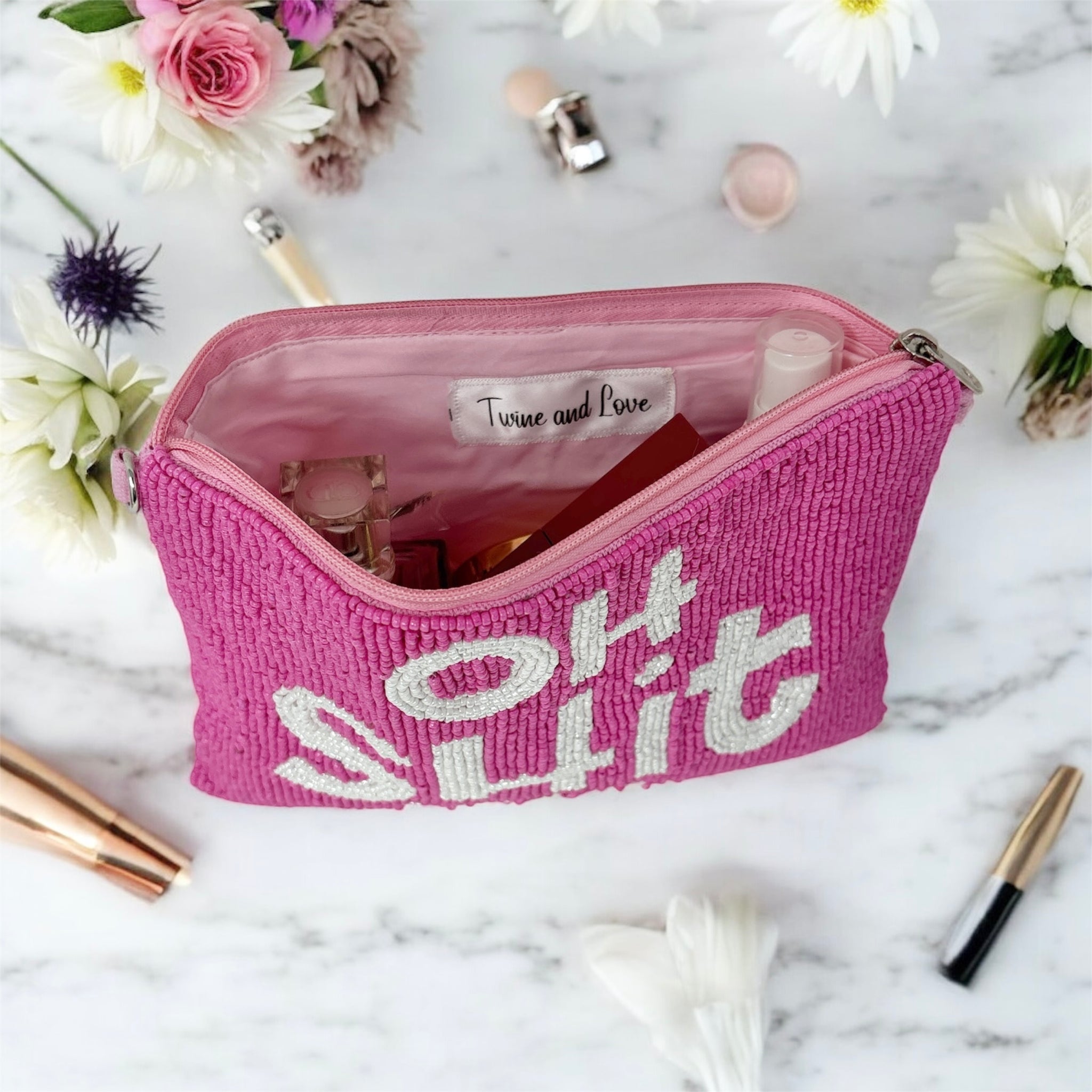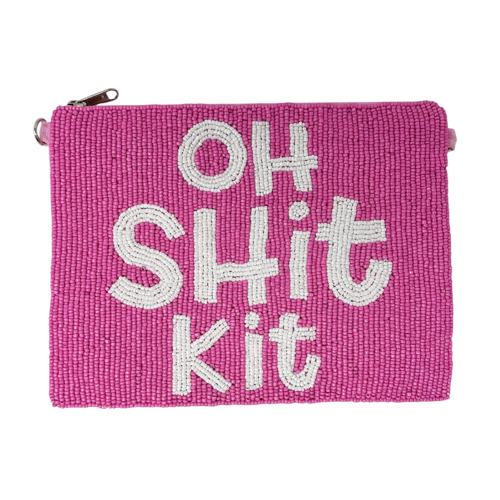 Elevate your essentials with the OH SHIT KIT LARGE Beaded Pouch. Hand-beaded with care, this versatile pouch easily transitions from a makeup bag to a passport holder or a stylish go-to purse. Its spacious size suits any occasion, while side hooks allow for a convenient crossbody option, keeping your hands free and your style impeccable. Perfectly compact yet roomy, it blends function with striking design.