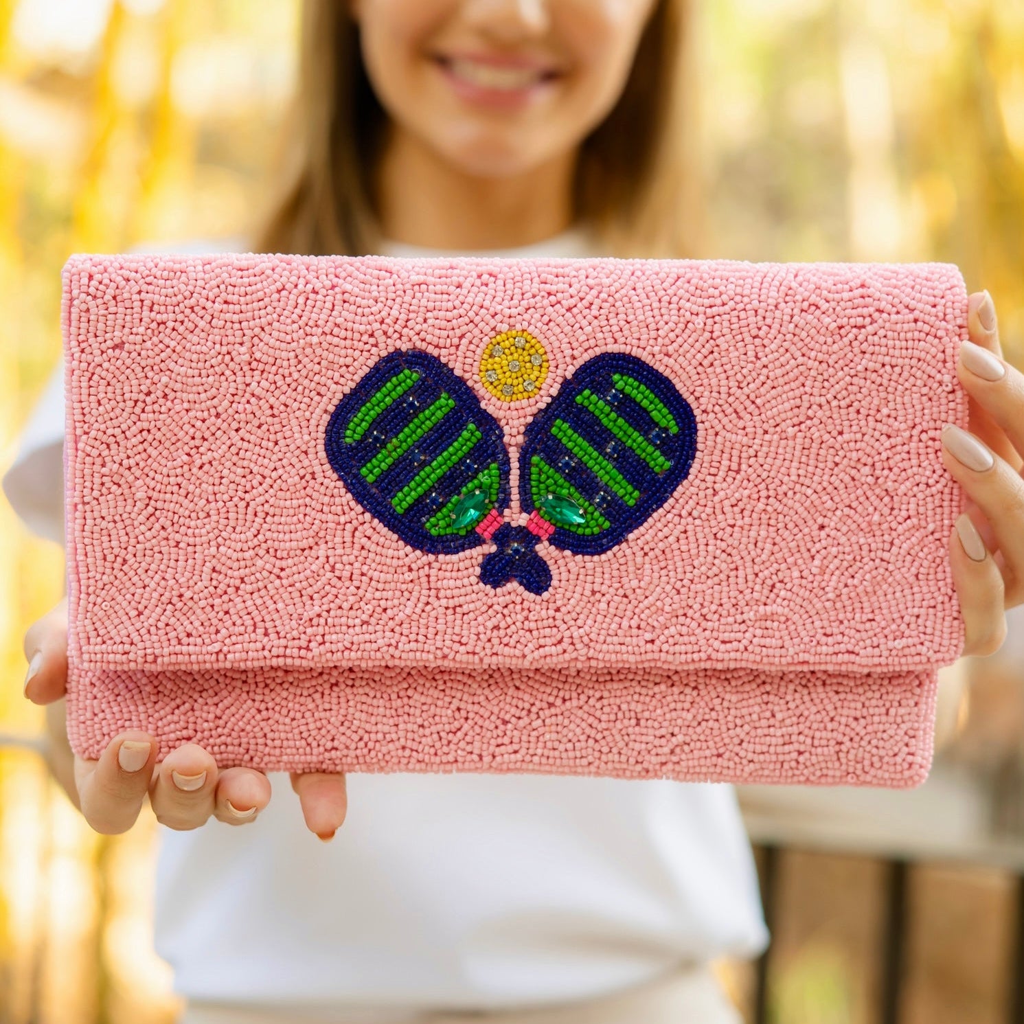 Crafted for elegance and convenience, our pickleball beaded clutch purse is the perfect accessory. Handmade with intricate details, this exquisite piece is sure to turn heads. Compact yet spacious, it provides ample storage space without the bulk. The included silver chain allows you to switch effortlessly from a clutch to a crossbody bag.